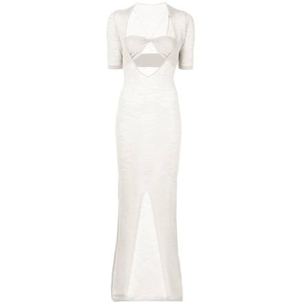 Featuring a split hem in the back of the dress