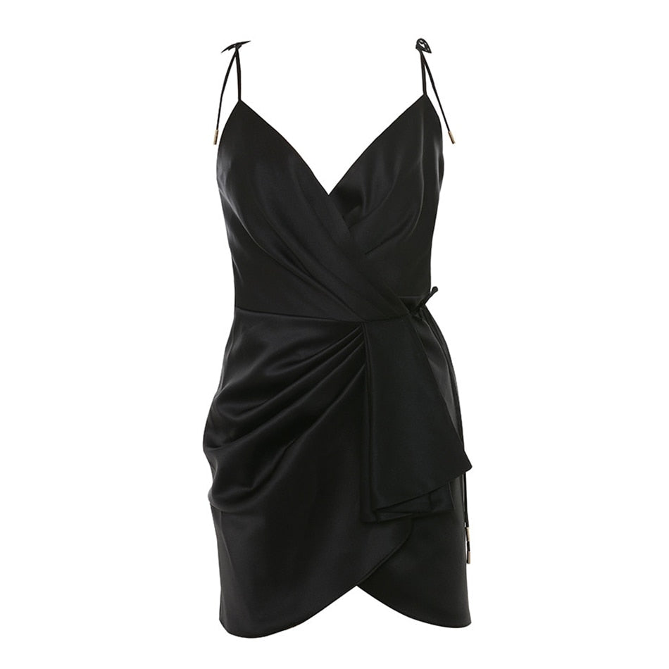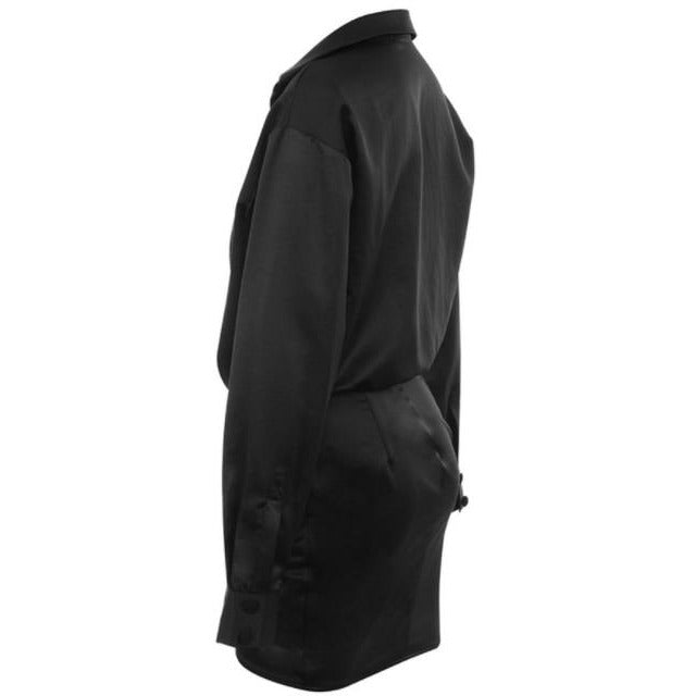 Black Satin Drape Dress